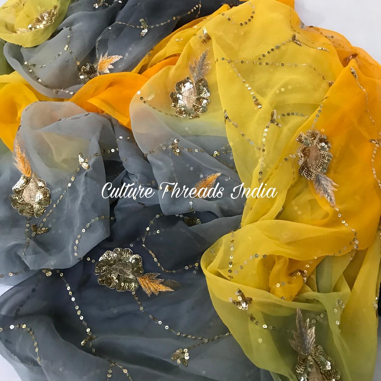 Chiffon is a delicate and lightweight fabric known for its sheer and elegant drape. Please be aware that due to the nature of chiffon, minor irregularities such as pulls, snags, or variations in weave may occur, adding to the character of the saree.While we take great care to ensure the quality and durability of these embellishments, they may require gentle handling to avoid damage.