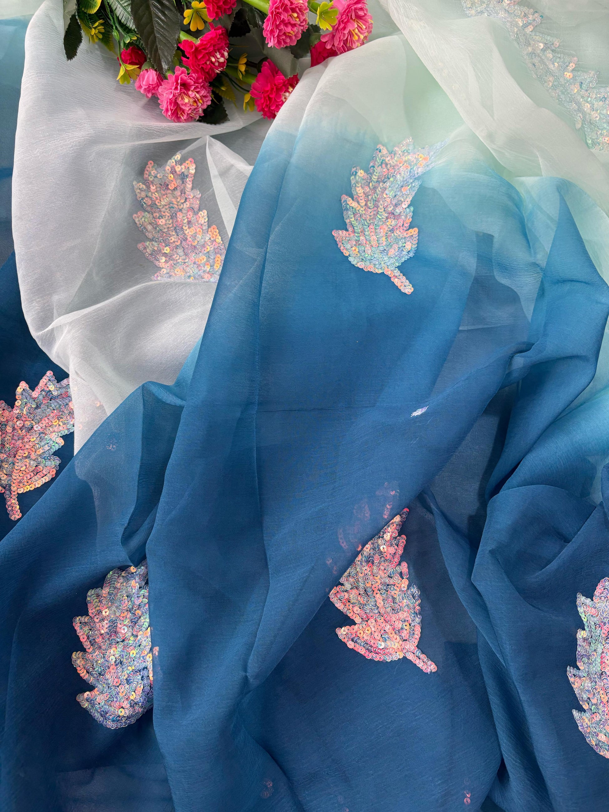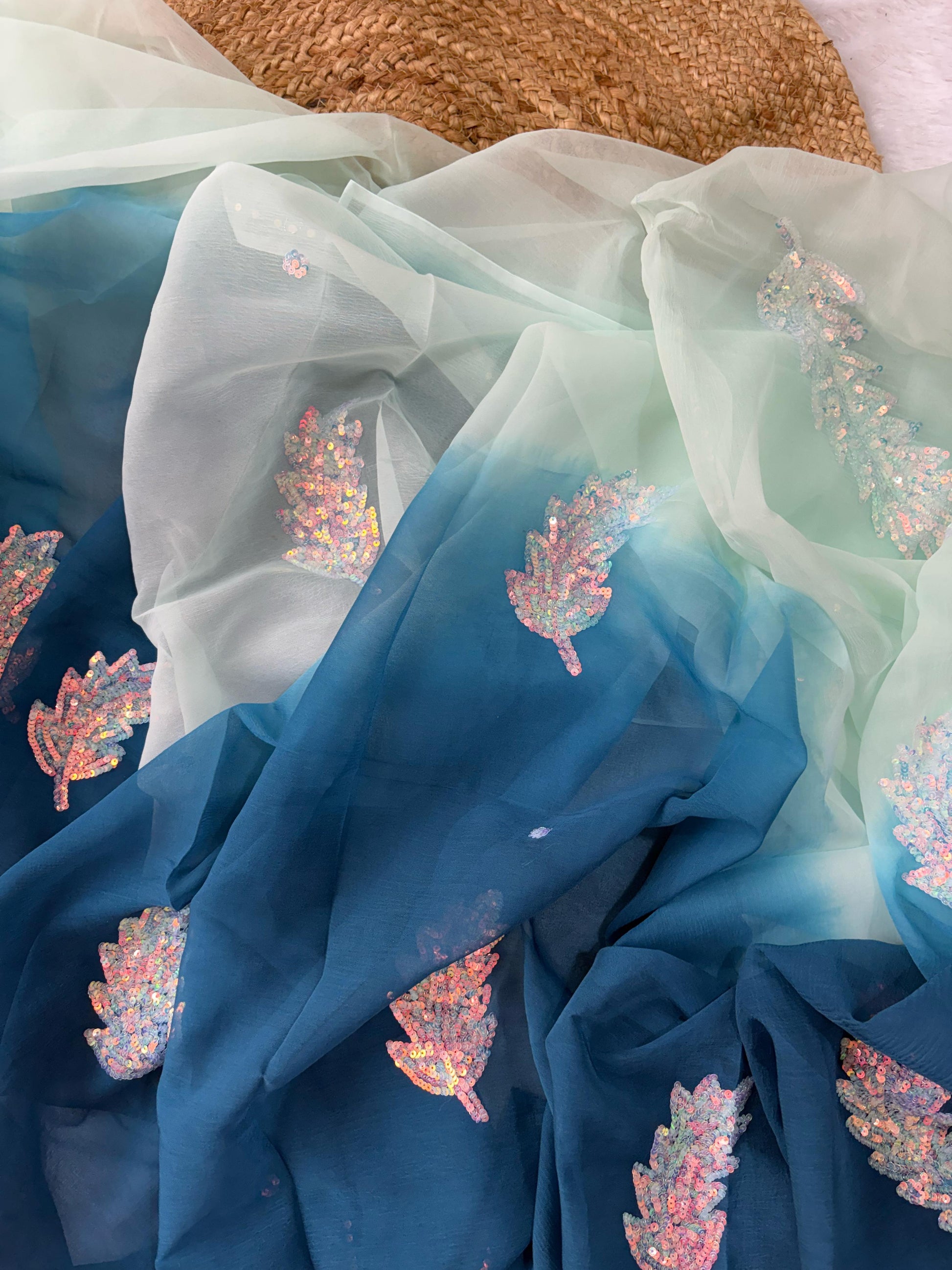Disclaimer: Our chiffon sarees are meticulously handcrafted by skilled artisans, resulting in unique and one-of-a-kind pieces. As such, slight variations in color, texture, and embroidery are to be expected, enhancing the individuality and charm of each saree.