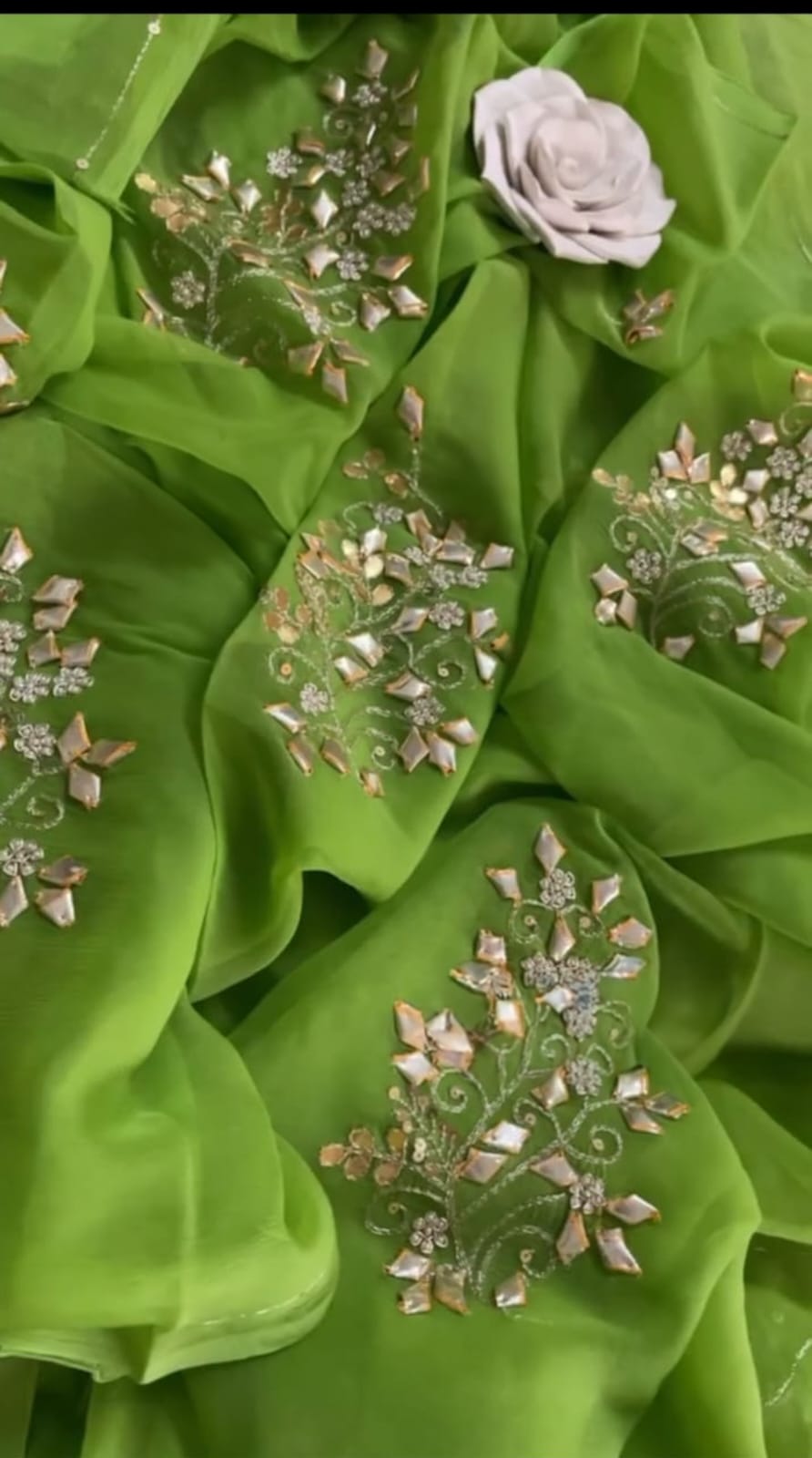 Chiffon is a delicate and lightweight fabric known for its sheer and elegant drape. Please be aware that due to the nature of chiffon, minor irregularities such as pulls, snags, or variations in weave may occur, adding to the character of the saree.While we take great care to ensure the quality and durability of these embellishments, they may require gentle handling to avoid damage.