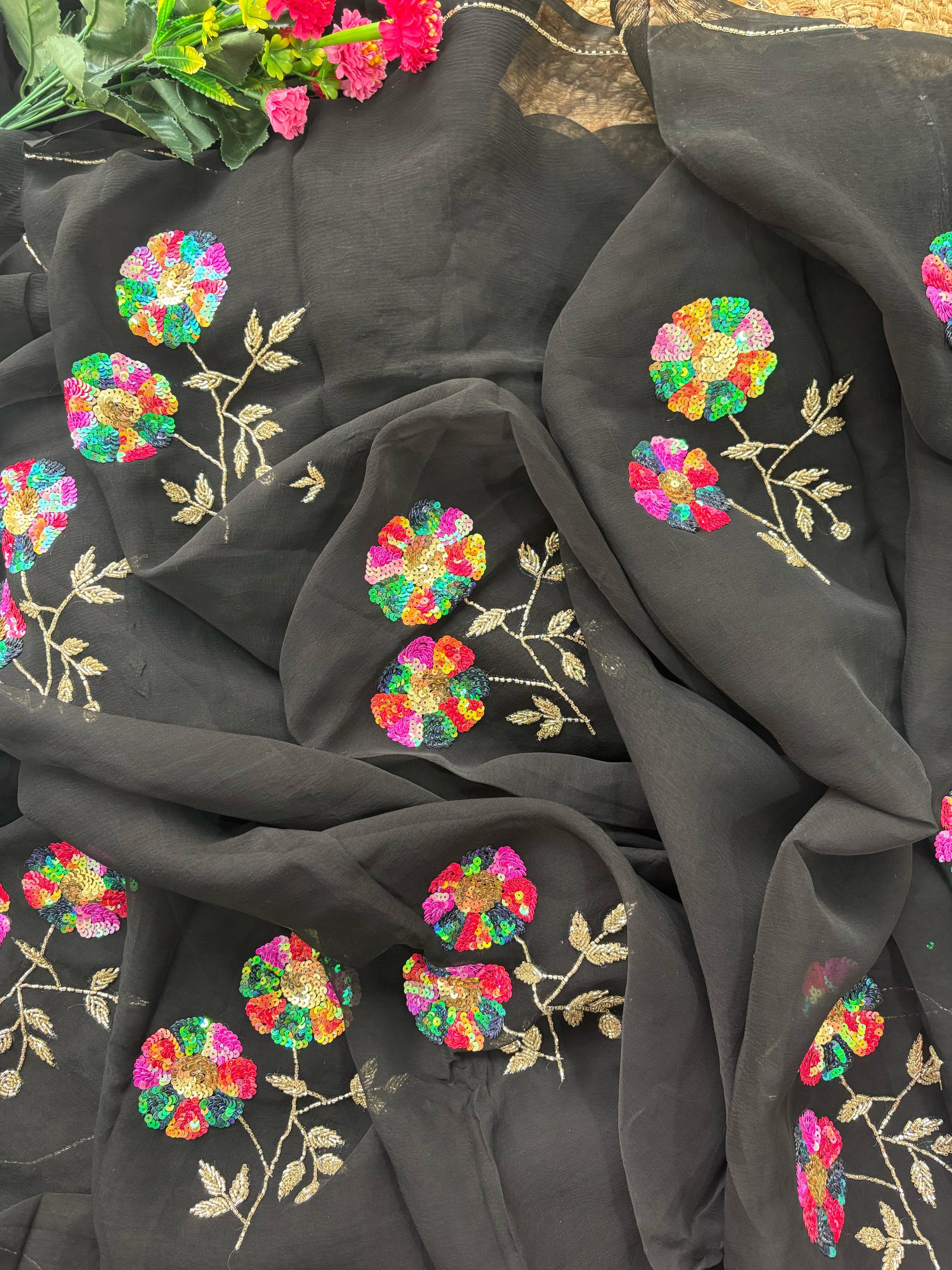 Disclaimer: Our chiffon sarees are meticulously handcrafted by skilled artisans, resulting in unique and one-of-a-kind pieces. As such, slight variations in color, texture, and embroidery are to be expected, enhancing the individuality and charm of each saree.