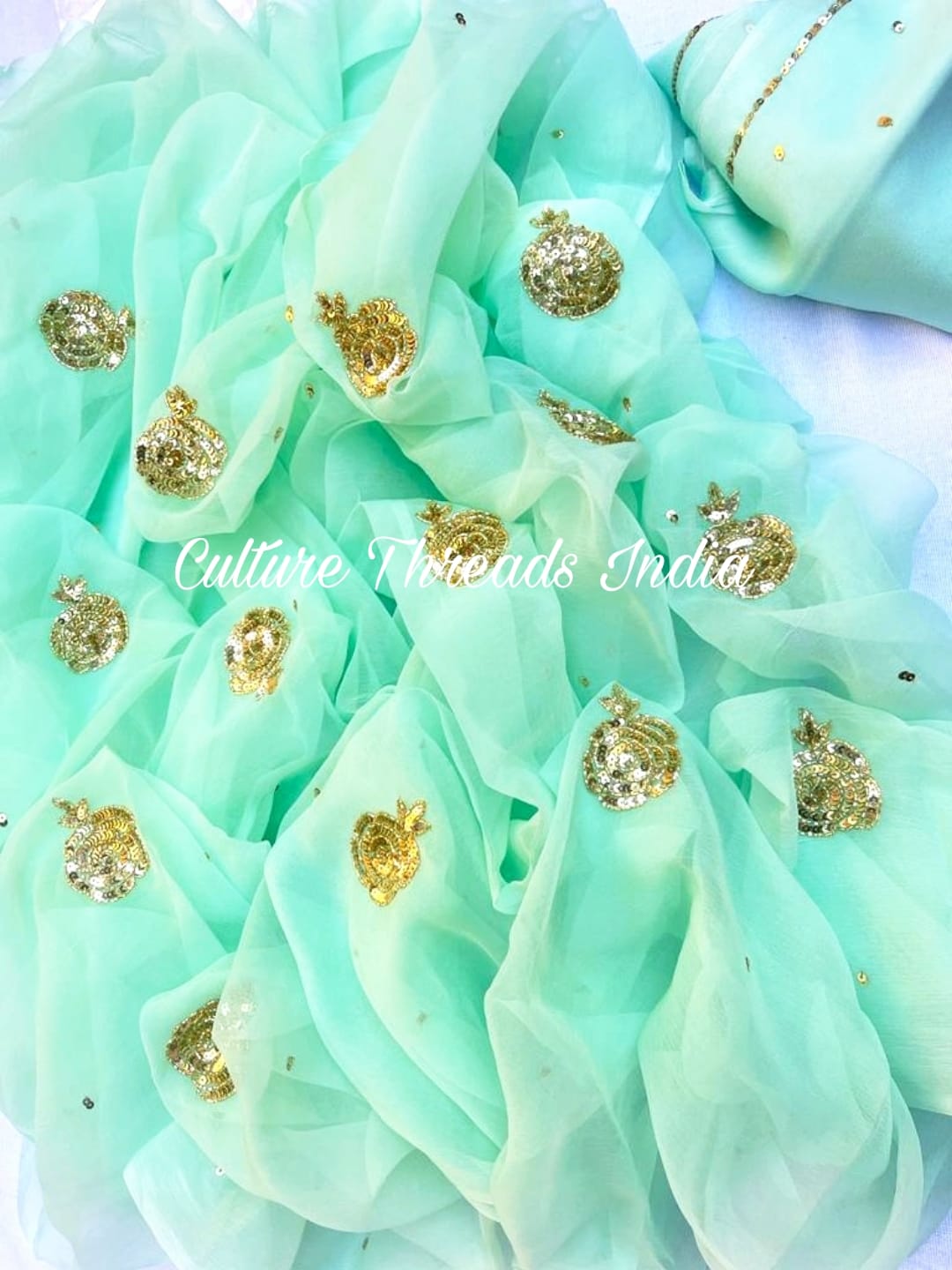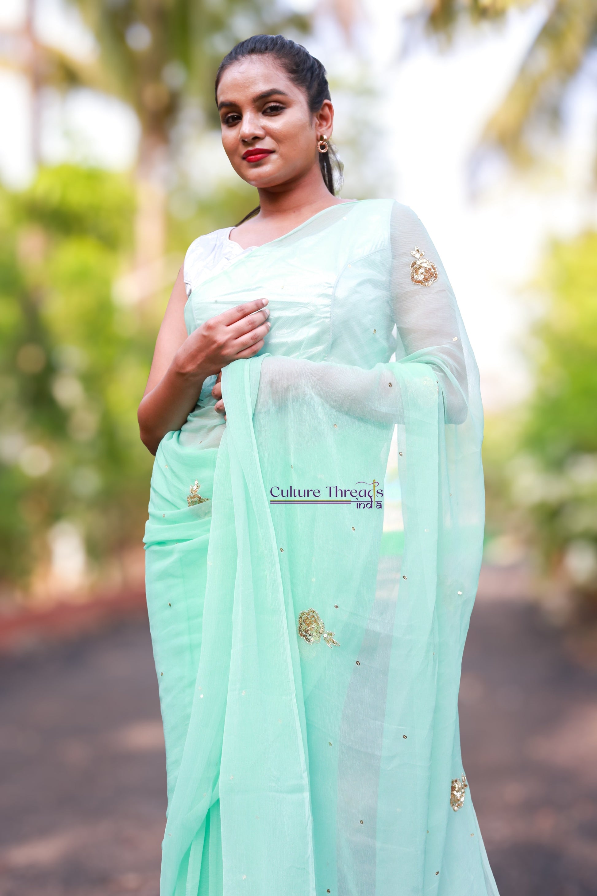 By purchasing our handcrafted chiffon sarees, you acknowledge and appreciate the artistry and craftsmanship involved in their creation.