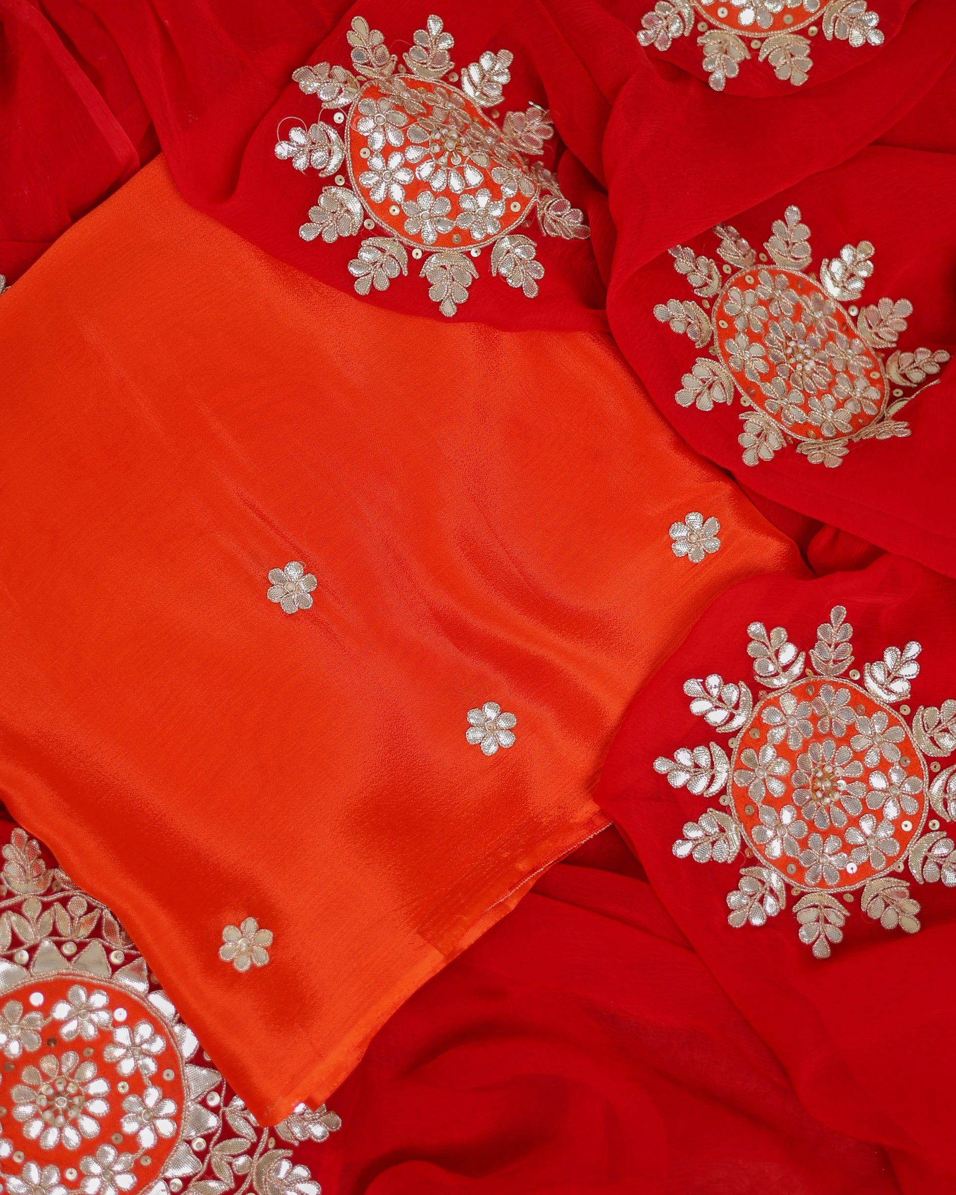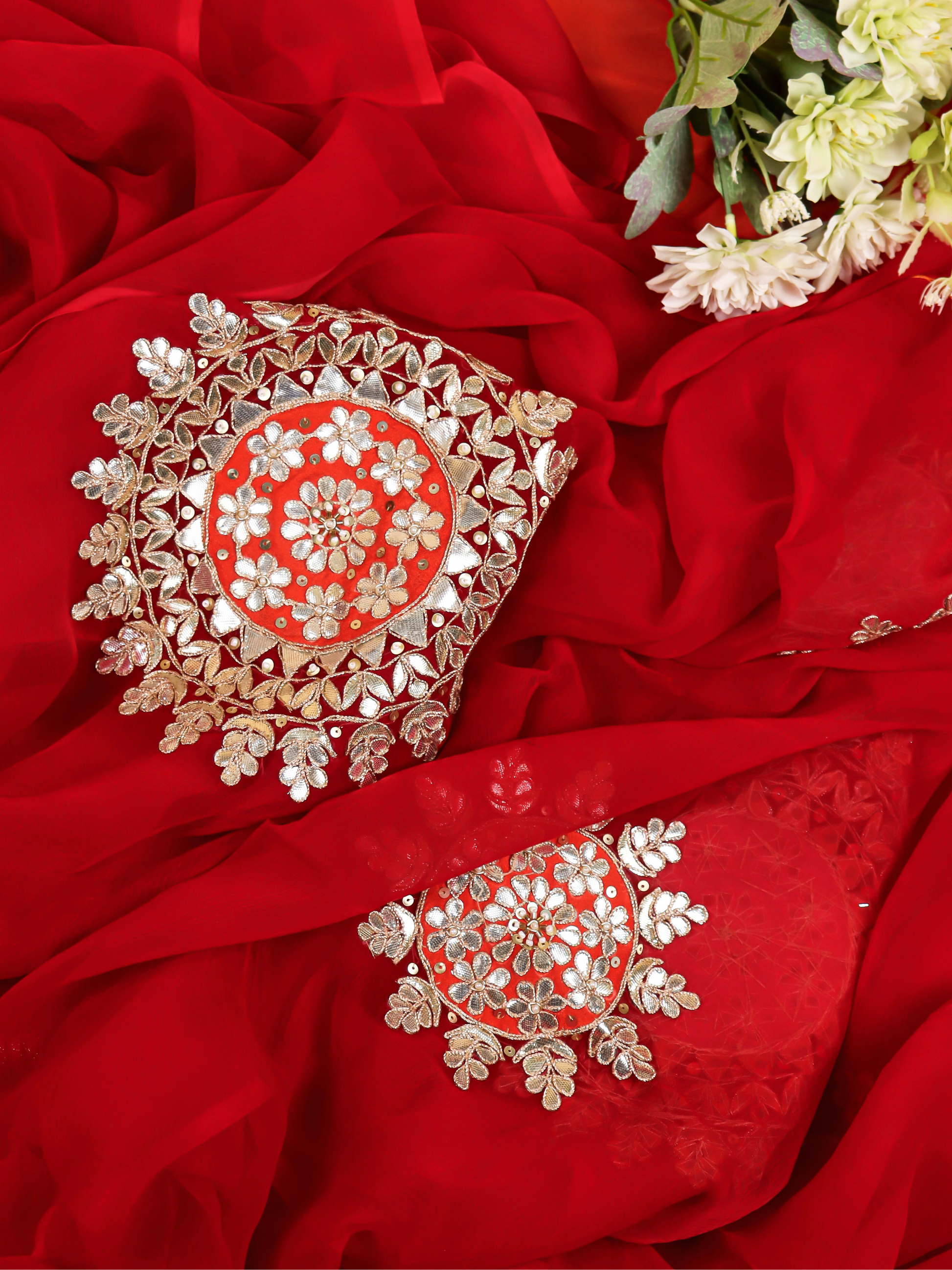 This red gotapatti saree is more than just a garment—it's a celebration of culture, craftsmanship, and timeless beauty. The intricate gota work dances across the rich red fabric, catching every glimmer of light and turning moments into memories. Perfect for festive nights, wedding vibes, or any occasion where grace meets grandeur.